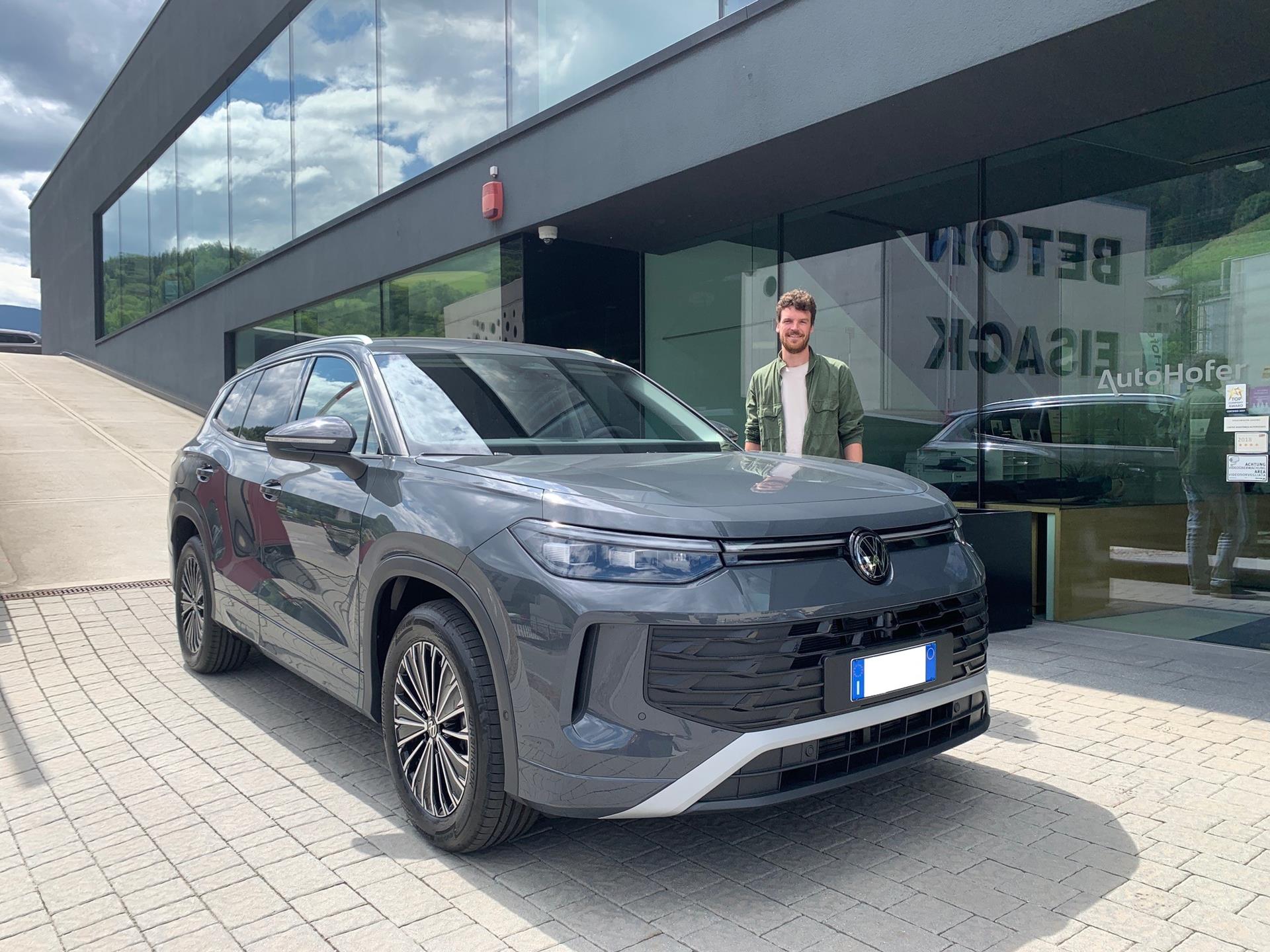 Unser Kunde Gabriel hat kürzlich seinen neuen VW Tayron bei uns am Firmensitz in Klausen, Südtirol in Empfang genommen – ein echtes Highlight in der SUV-Reihe von Volkswagen.