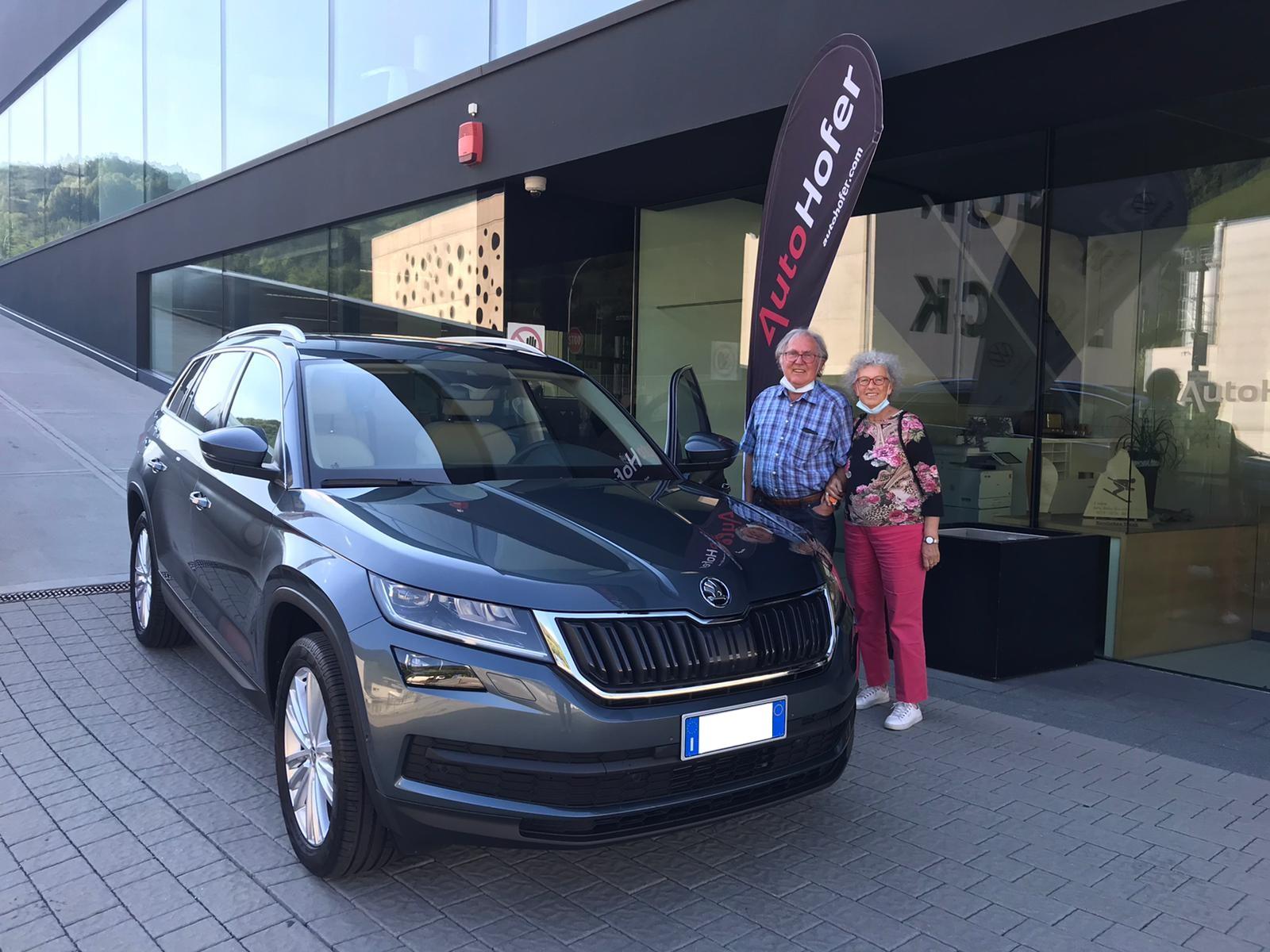Margit e Roman con la loro nuova auto dei loro sogni: una Skoda Kodiaq 2.0 TDI 4x4 con cambio automatico! La Skoda Kodiaq è il compagno ideale per gite in montagna o per lunghe distanze. Tutto lo staff di Auto Hofer vi augura tante belle avventure con il SUV di Skoda.