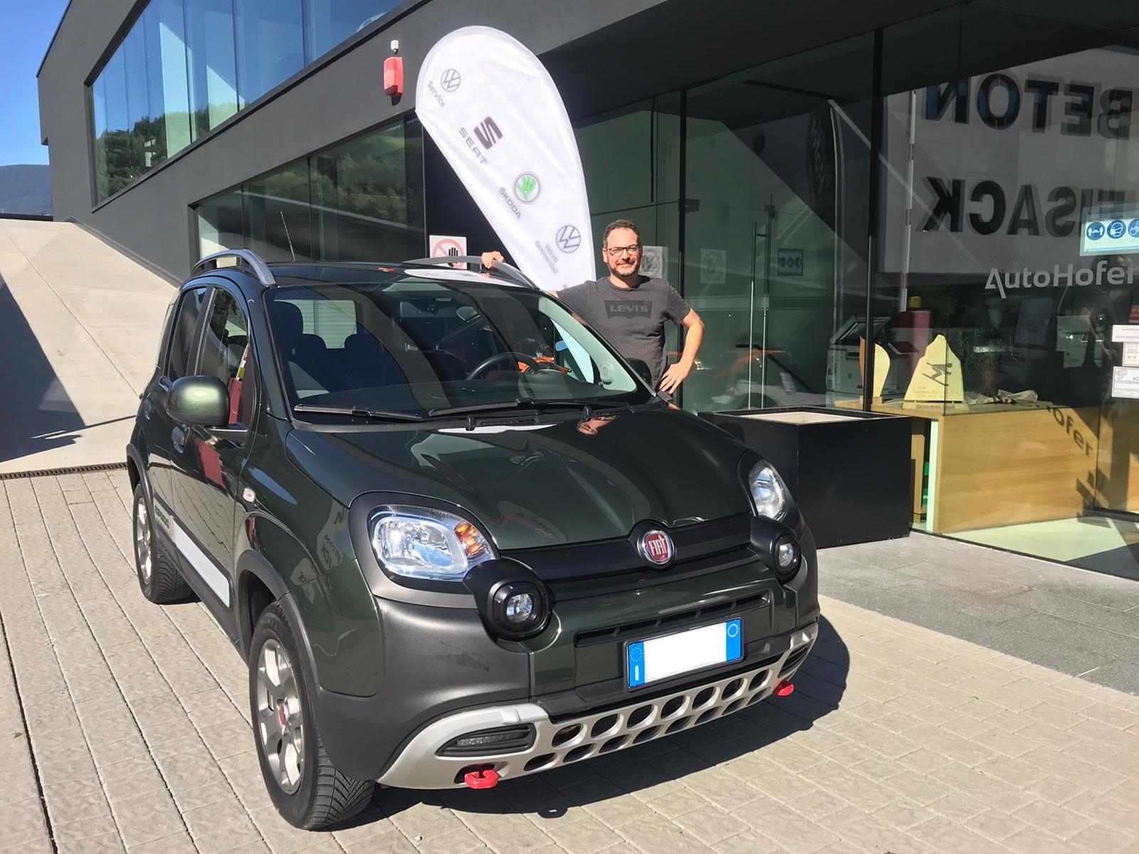 D'ora in poi Giovanni è in viaggio con questa Fiat Panda 1.3 verde oliva! Sia durante la vita quotidiana che nelle avventure in fuoristrada: La Fiat Panda assicura un aspetto elegante su ogni terreno! Tutto lo staff di Auto Hofer ti augura un buon viaggio e tante belle esperienze con il crossover di Fiat.