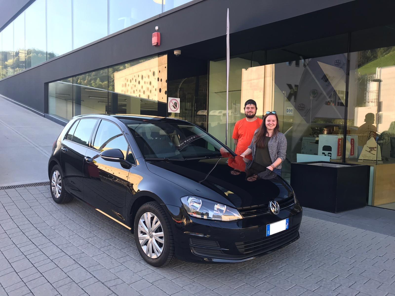 Johanna, Martin e il loro nuovo compagno su quattro ruote: d'ora sono in viaggio con questa Volkswagen Golf Comfortline 2.0 TDI importata con cambio automatico! Siamo sicuri che questa VW Golf sarà un partner affidabile per voi in tutte le situazioni. Tutto lo staff di Auto Hofer vi augura un buon viaggio con la icona del marchio Volkswagen!