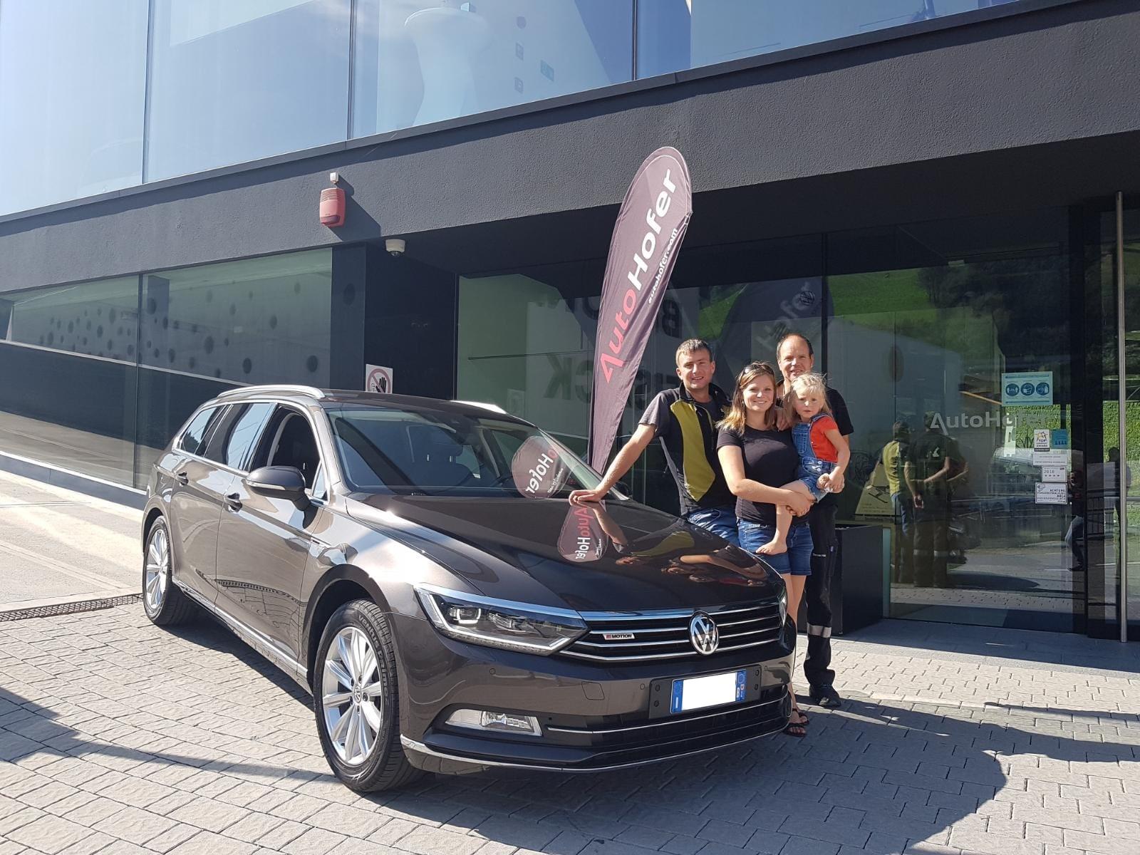 Jörg, Elisabeth, la figlia Nadine e il suocero Josef al ritiro della Volkswagen Passat 2.0 TDI Highline con trazione integrale e cambio automatico! Con la VW Passat avete trovato un veicolo familiare affidabile, che convince per il suo aspetto dinamico e il suo equipaggiamento confortevole. Tutto lo staff di Auto Hofer vi augura buon divertimento con il vostro nuovo compagno sulle strade.
