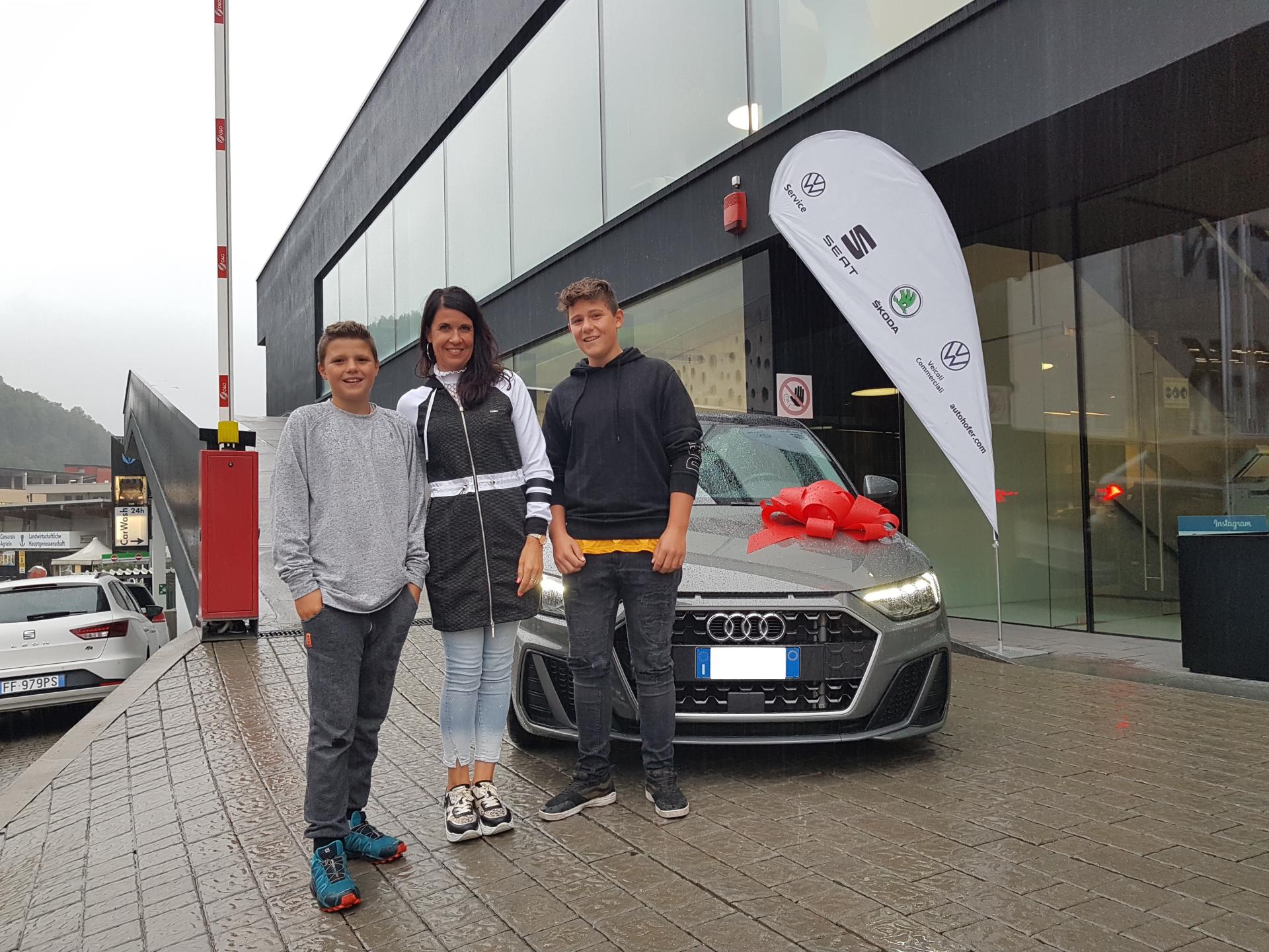 Gabi con i suoi due figli Rene e Ivan al ritiro del loro nuovo compagno su quattro ruote: d'ora in poi sono in viaggio con questa Audi A1 Sportback S-Line. Per Gabi il citycar di Audi è il regalo perfetto per il compleanno e per l'anniversario di matrimonio! Naturalmente tutto lo staff di Auto Hofer vi augura un viaggio sicuro e piacevole in ogni momento.