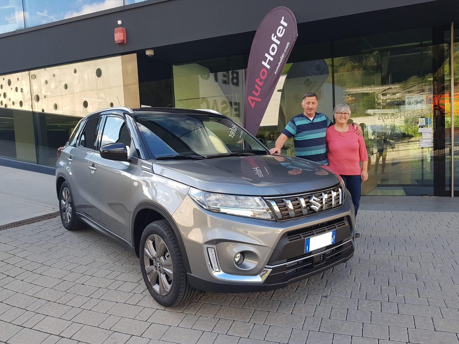 Claudia, Peter e il loro nuovo acquisto: questa Suzuki Vitara 1.4 Hybrid è la perfetta combinazione di fuoristrada e vita quotidiana! Inoltre, la tecnologia ibrida della Suzuki Vitara è sostenibile e rispettosa dell'ambiente. Lo staff di Auto Hofer vi augura buon divertimento e un buon viaggio con il SUV compatto di Suzuki.