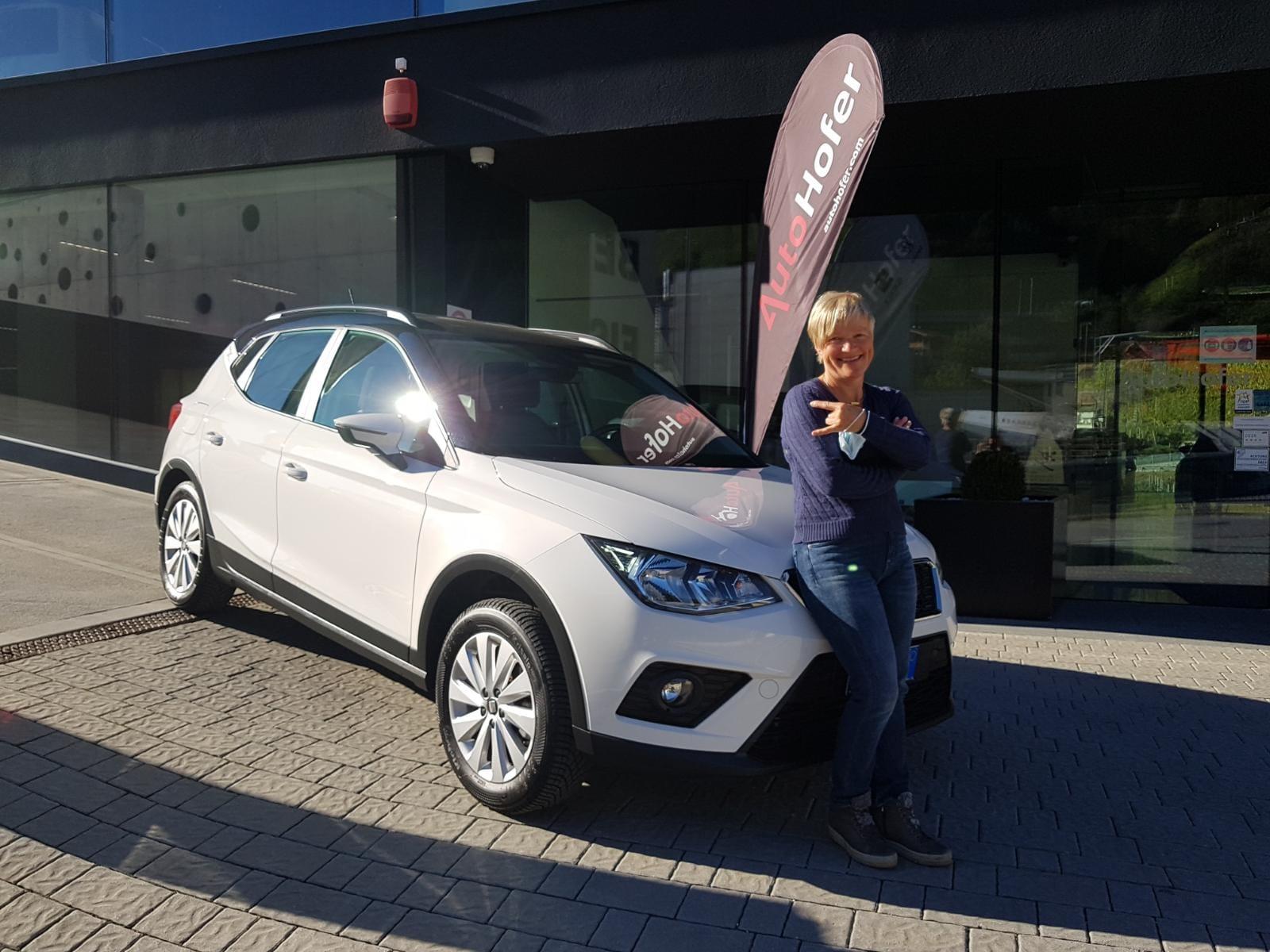 Hedwig e la sua Seat Arona 1.6 TSI Style. Con la Seat Arona Hedwig ha trovato il SUV compatto perfetto per tutte le avventure e le situazioni della vita: 400 litri di volume nel bagagliaio, numerosi dettagli di equipaggiamento e un design individuale caratterizzano il SUV di Seat. Tutto lo staff di Auto Hofer ti augura un buon viaggio.