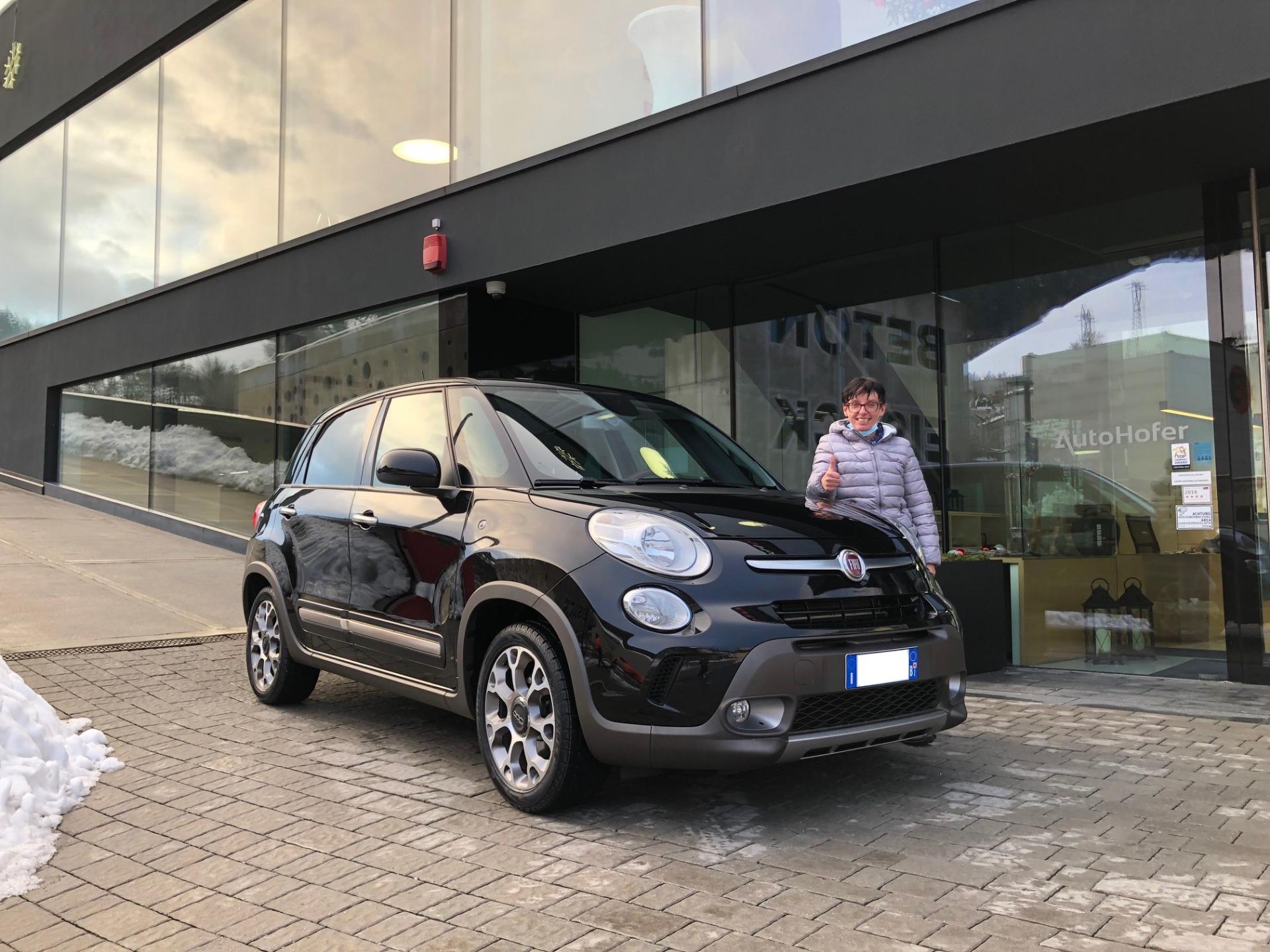 Monika e il suo nuovo acquisto: questa Fiat 500L Trekking la accompagnerà in tutte le sue avventure d'ora in poi. La Fiat 500L è un'auto familiare spaziosa e allo stesso tempo maneggevole con il massimo livello di comfort. Tutto lo staff di Auto Hofer augura tante belle esperienze con il minivan di Fiat.