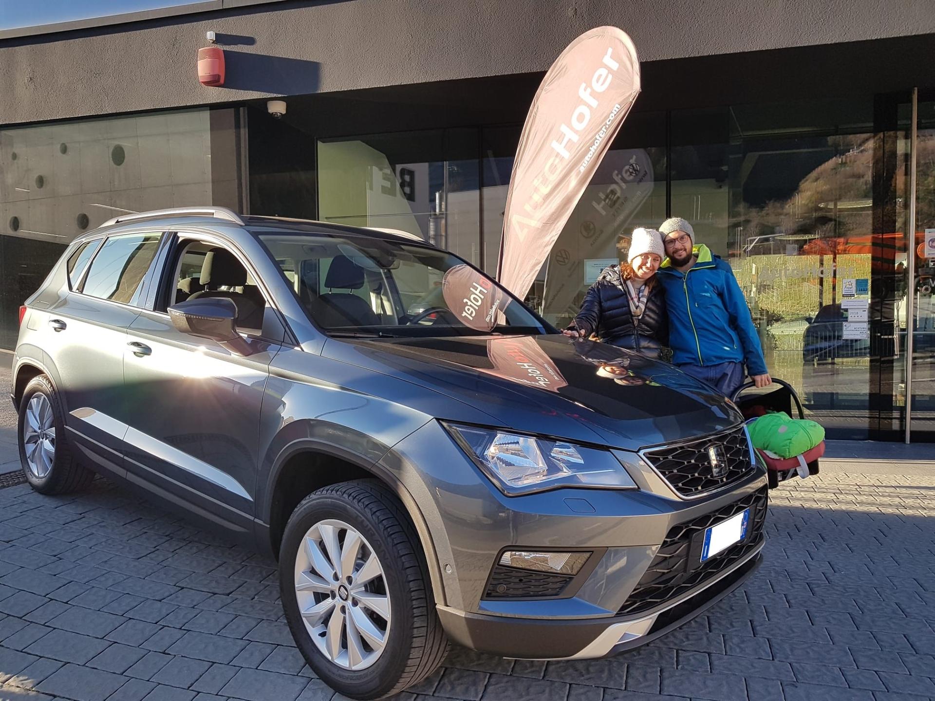 Eva e la sua piccola famiglia al ritiro del loro nuovo compagno su quattro ruote: d'ora in poi, la famiglia di tre persone sarà in viaggio in questa Seat Ateca 2.0 TDI 4Drive. Il robusto SUV di SEAT é un partner affidabile in ogni situazione quotidiana! Tutto lo staff di Auto Hofer augura tanto divertimento e, naturalmente, un viaggio sicuro.