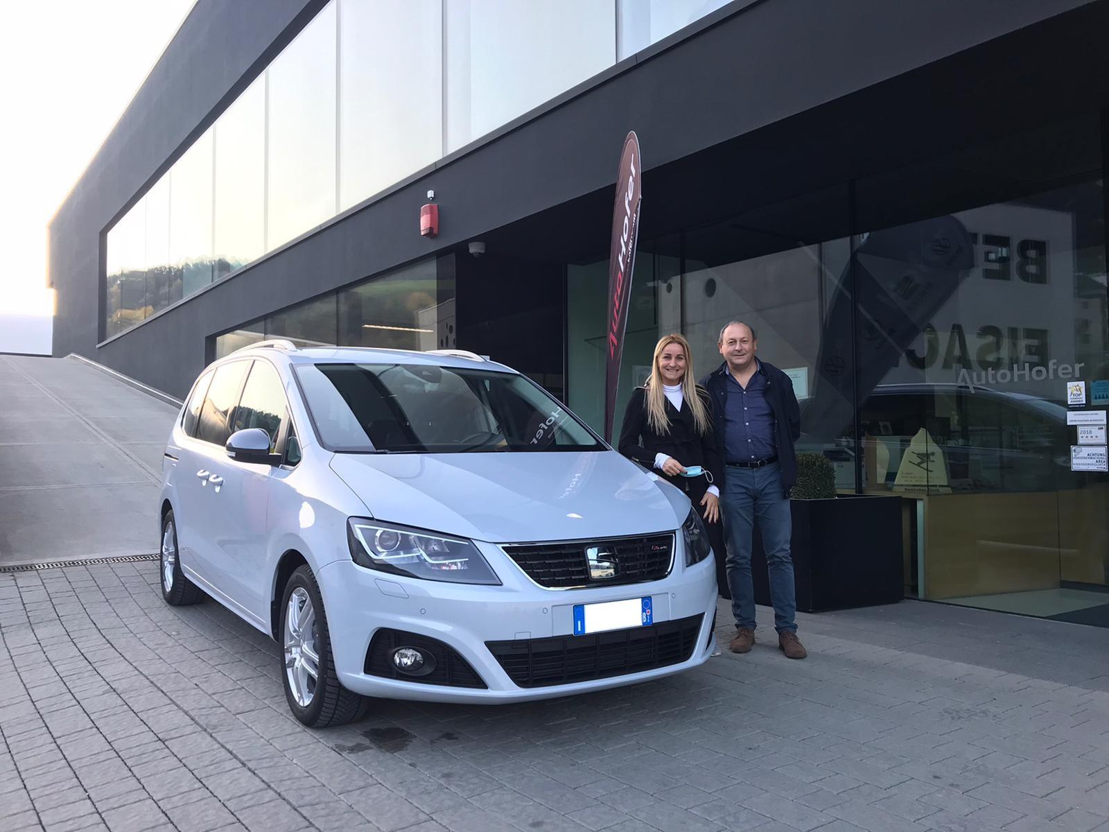 Stefan al ritiro della sua Seat Alhambra 2.0 TDI 4Drive FR. I numerosi dettagli innovativi rendono ogni viaggio nella Seat Alhambra un'esperienza speciale. Tutto lo staff di Auto Hofer ti augura un viaggio sicuro con il versatile family-van di Seat.