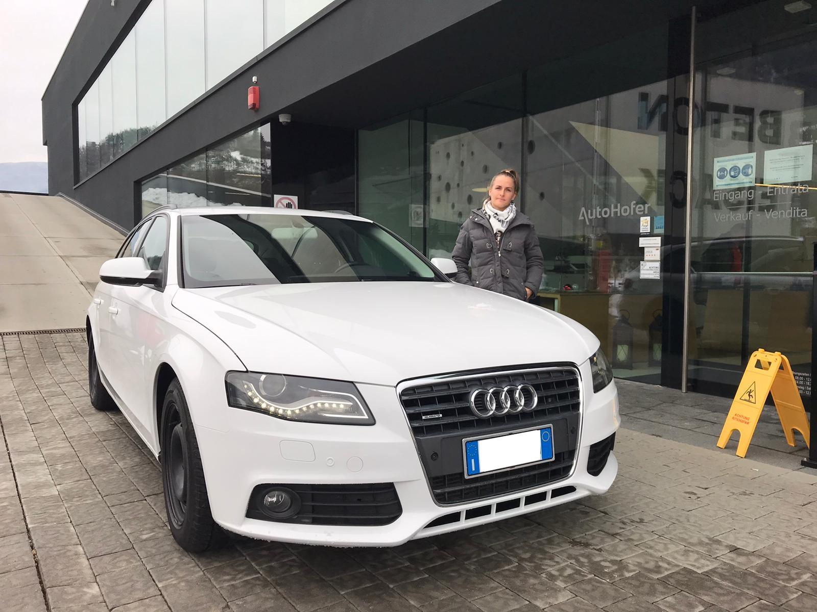 Verena ha scelto una Audi A4 usata come suo nuovo compagno su quattro ruote. Speriamo che l’Audi A4 ti sarà un partner affidabile in ogni situazione. Tutto lo staff di Auto Hofer ti augura un buon viaggio!