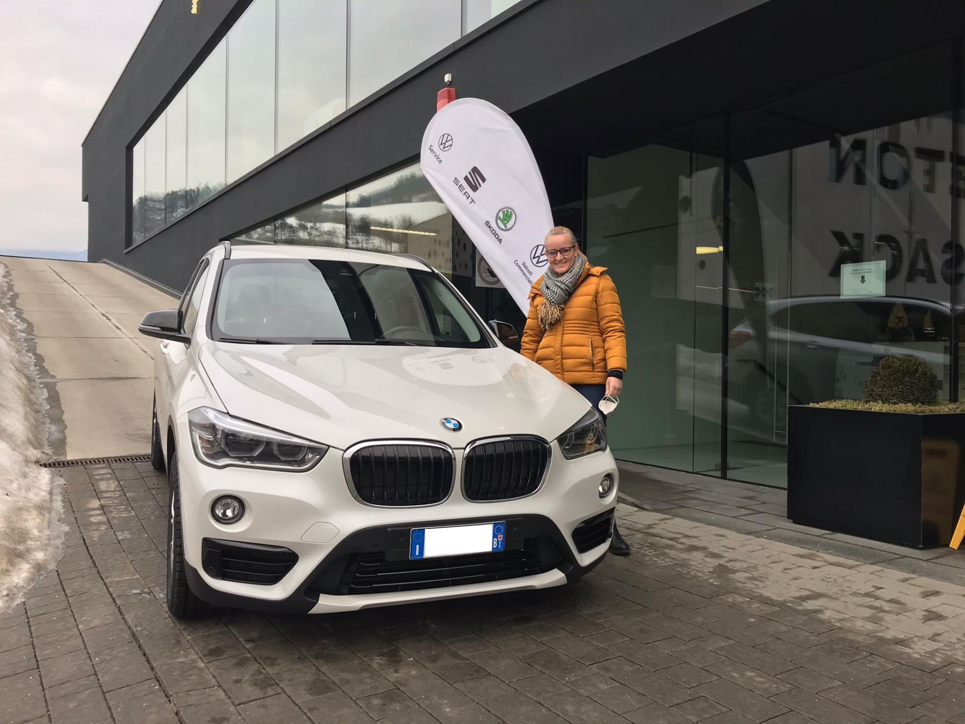 ...Stefanie al ritiro della sua nuova BMW X1! Il SUV di BMW segna soprattutto con il suo equipaggiamento sportivo e il suo look distintivo. Cara Stefanie, tutto lo staff di Auto Hofer ti augura tanta gioia e un buon viaggio.