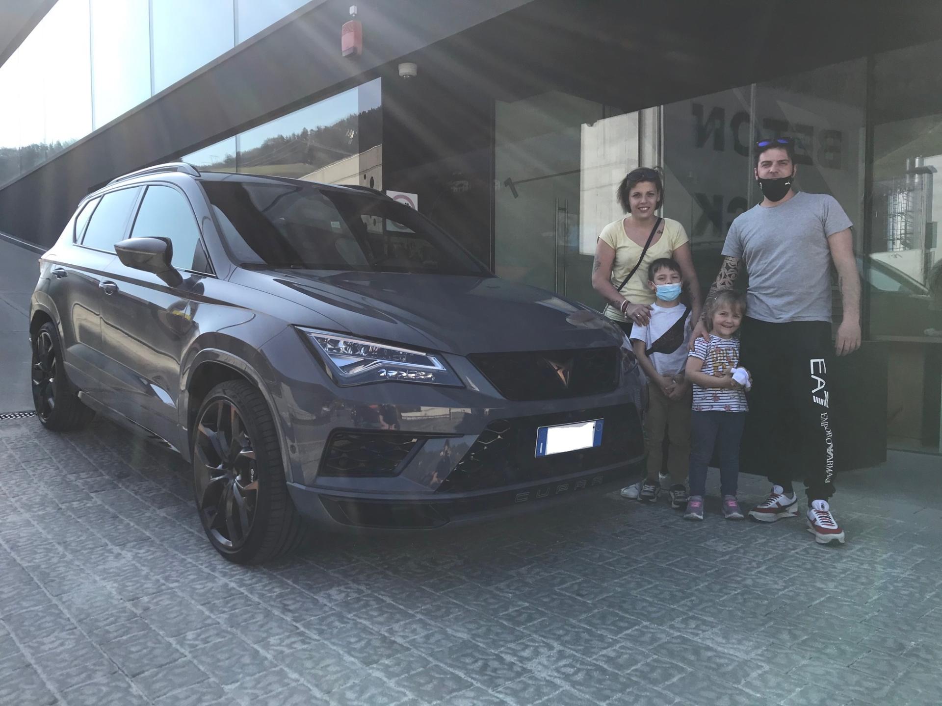 Distintivo. Sicuro di sé. Esigente. Design raffinato. La nuova CUPRA Ateca. E la famiglia Del Curto può ritenersi fortunata come suoi nuovi proprietari! Con il suo tetto panoramico e lo spazioso bagagliaio, è perfetta per i lunghi viaggi, forse anche per la vostra prossima vacanza? In ogni caso, vi auguriamo buon divertimento e vi ringraziamo per la vostra fiducia.
