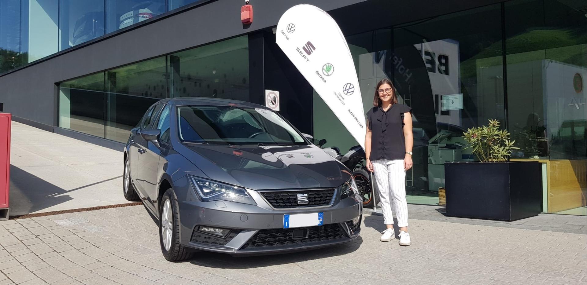 Un altro modello popolare lascia la nostra sede aziendale a Chiusa: d’ora in poi Claudia è in viaggio con questa Seat Leon 1.6 TDI Style! Salire in auto, sentirsi bene e partire è la filosofia dell’auto compatta spagnola. Comfort infinito, numerosi sistemi di assistenza e un design nobile caratterizzano la Seat Leon. Tutto lo staff di Auto Hofer ti augura, cara Claudia, un viaggio sicuro e naturalmente tante avventure indimenticabili con il tuo nuovo compagno su quattro ruote.