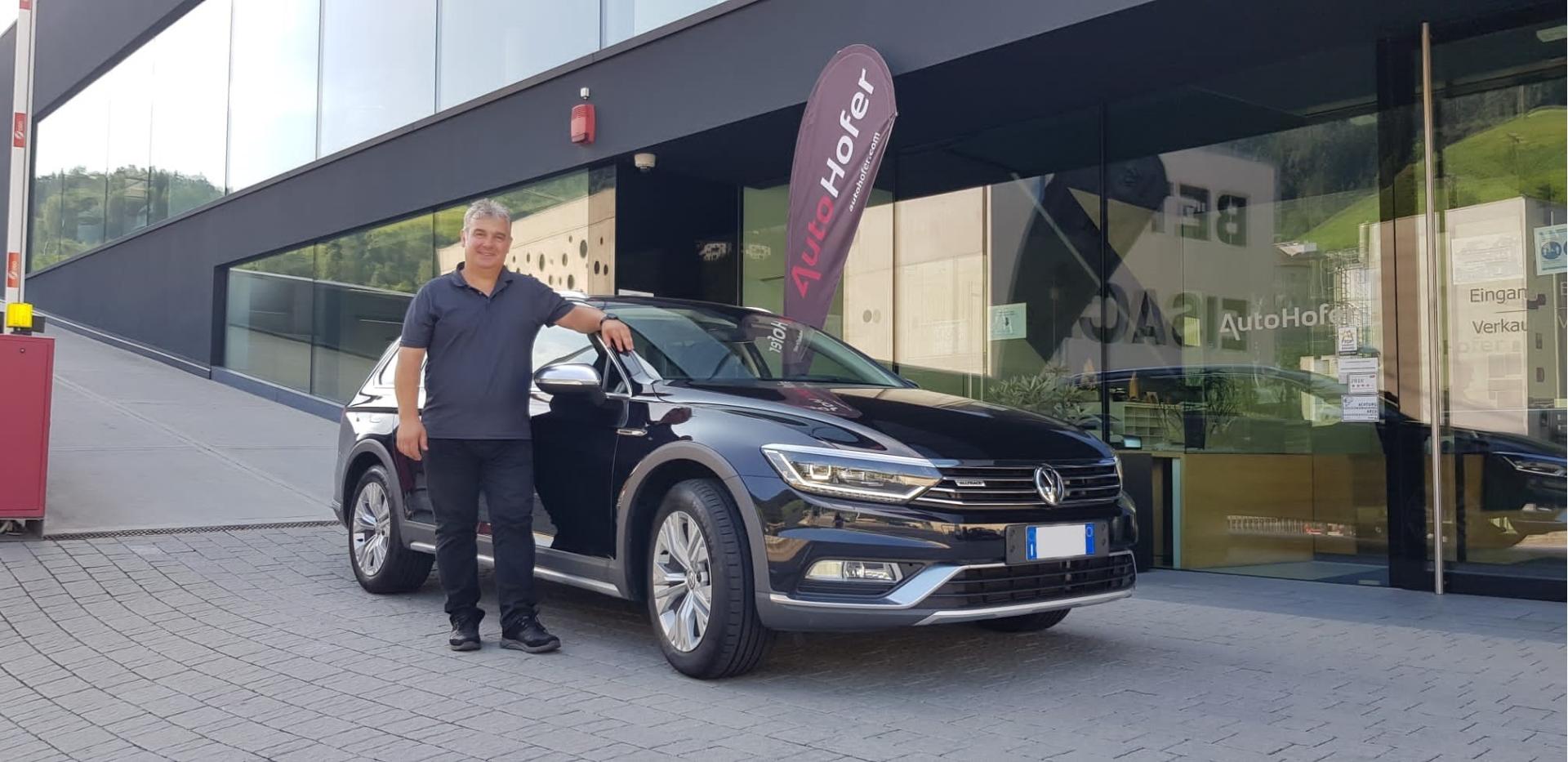 Weico” ha trovato il compagno perfetto per qualsiasi situazione! La VW Passat Alltrack è il perfetto allrounder in qualsiasi situazione. Inoltre, la vettura compatta di Volkswagen è caratterizzata da un concetto di spazio generoso, un comfort ad alto livello e un da design dinamico. Caro Stefan, ti auguriamo un viaggio sicuro con il tuo nuovo compagno su quattro ruote.