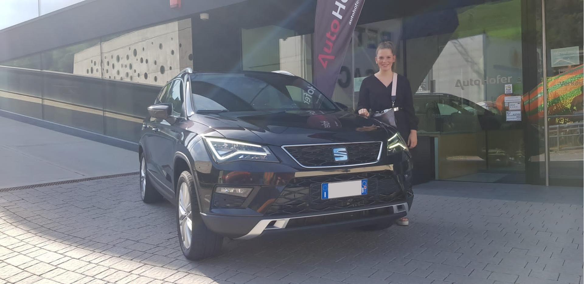 Nata per la città, zero stress - ma massimo divertimento. La tecnologia avanzata della Seat Ateca Xcellence 2.0 TDI convince sotto ogni aspetto. Numerosi sistemi di assistenza garantiscono ulteriore sicurezza a bordo, così come tanti sistemi di comfort rendono più facile la tua vita quotidiana. Con il SUV spagnolo del marchio Seat, Miriam ha trovato il compagno perfetto su quattro ruote. Tutto lo staff di Auto Hofer ti augura tanto divertimento e soprattutto un viaggio sicuro con la tua Seat Ateca Xcellence!