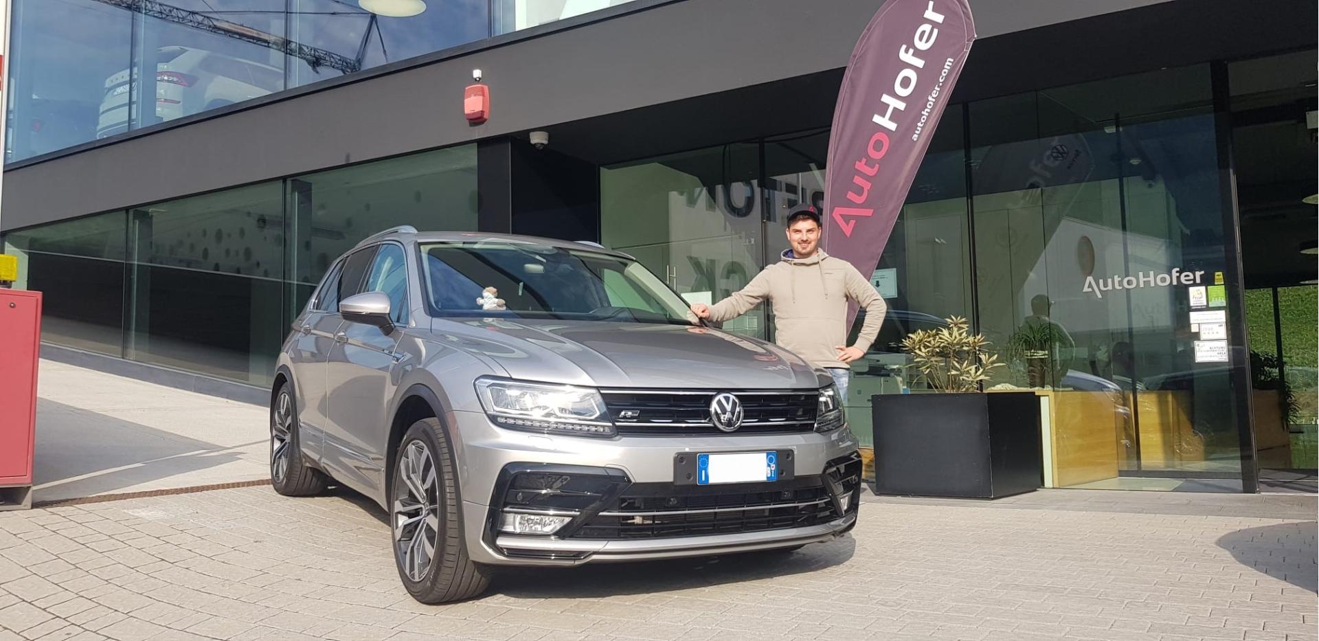 Un SUV eccezionale. La VW Tiguan 2.0 TDI convince sotto ogni aspetto e d'ora in poi accompagnerà Michael su tutte le sue avventure. Design progressivo con linee chiare e dettagli sportivi: il popolare crossover di Volkswagen è il compagno perfetto per la vita quotidiana. Città, montagna o mare: con la VW Tiguan hai l'imbarazzo della scelta! Caro Michael, tutto lo staff di Auto Hofer ti augura tanto divertimento e, soprattutto, un viaggio sicuro!