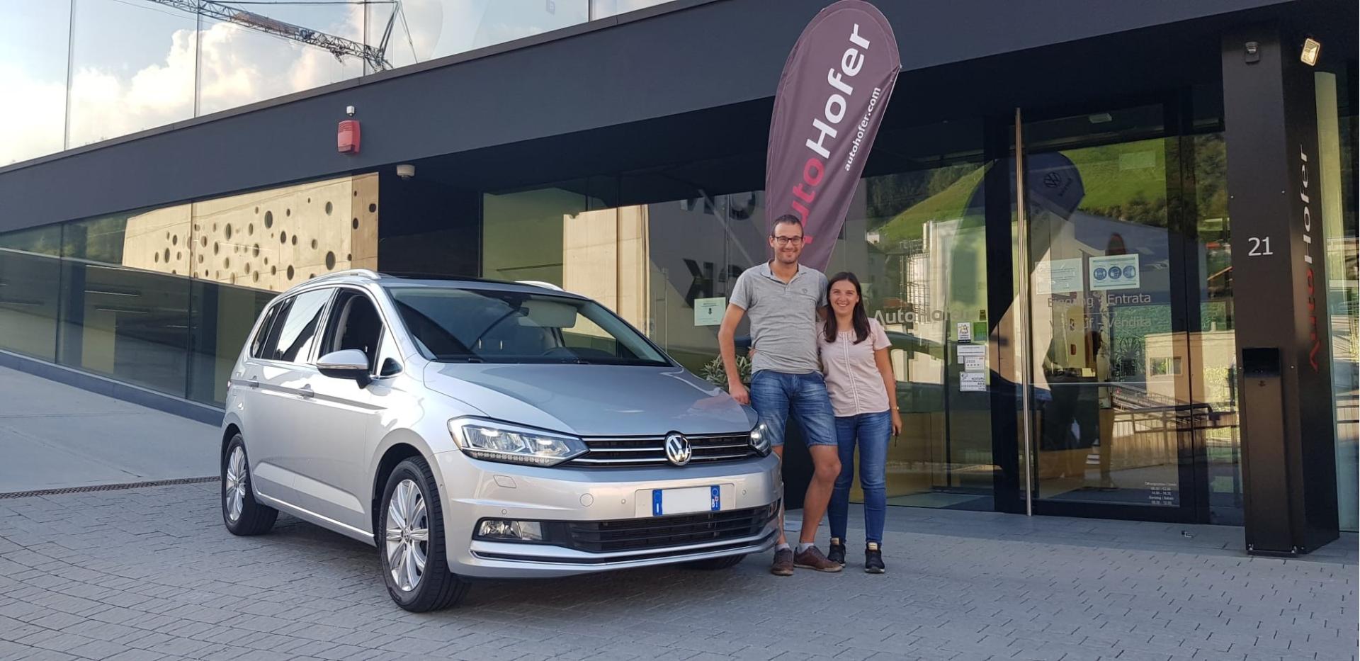 Un acquisto per la vita. Carica e parti con la VW Touran: con bambini, bagagli o gli amici - la monovolume a sette posti ha spazio per tutto ciò che è importante nella vita. Con la VW Touran, Tanja e Philipp saranno sempre in giro in modo efficiente e versatile, e grazie ai moderni sistemi di assistenza e infotainment ogni viaggio sarà esperienza indimenticabile. Cari Tanja e Philipp, vi auguriamo tanto divertimento e un viaggio sicuro!