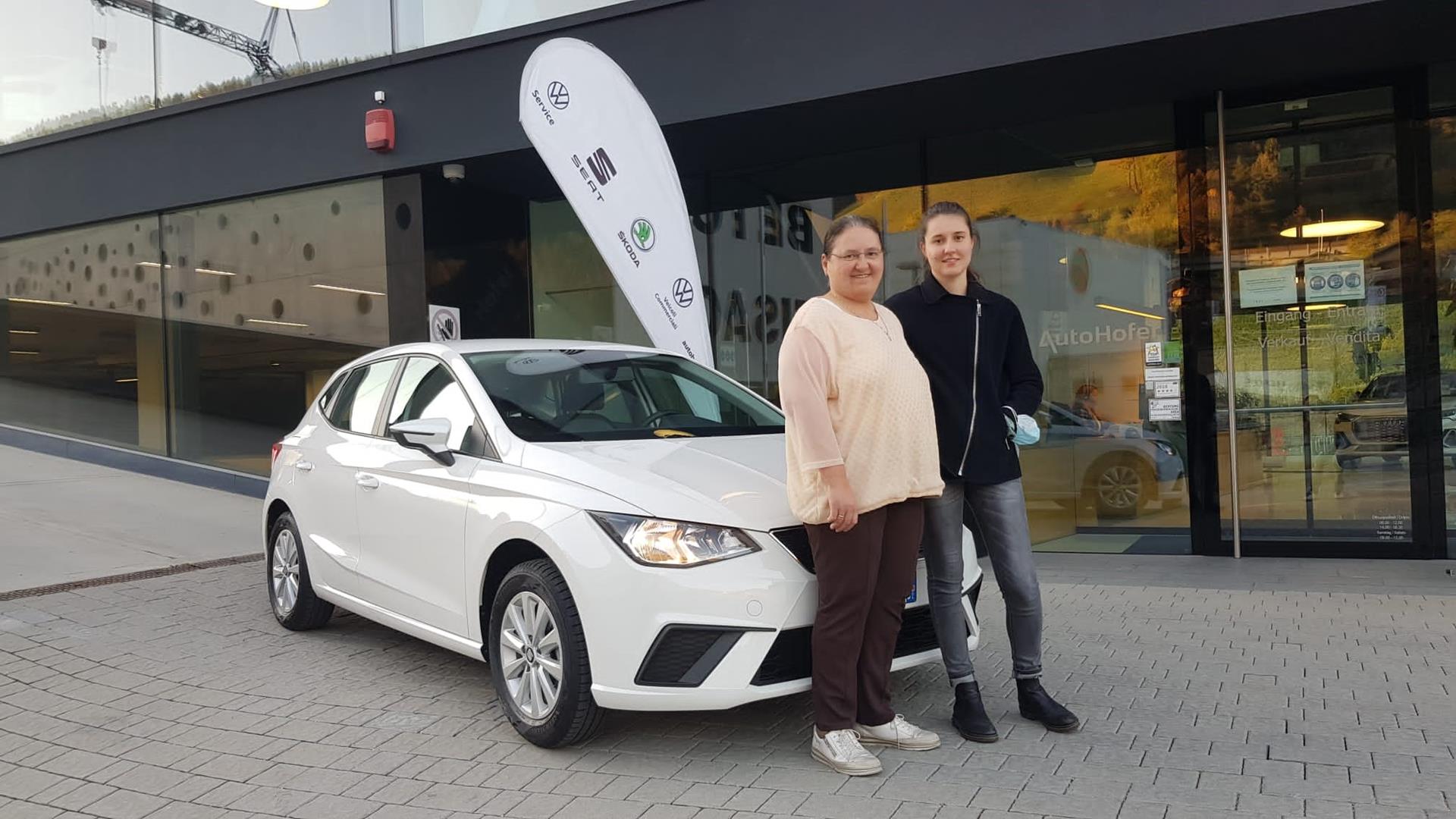 Cominci la tua giornata con il city runabout di Seat! D'ora in poi, Magdalena è in viaggio con il suo nuovo compagno su quattro ruote: con questa Seat Ibiza 1.0 Style, il divertimento è pre-programmato. Linee dinamiche, design accattivante, highlight sportivi. La Seat Ibiza convince con numerosi dettagli. Cara Magdalena, ti auguriamo tanto divertimento e naturalmente un viaggio sicuro con il tuo nuovo acquisto!