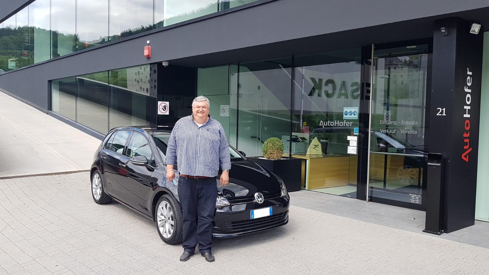 Josef e la sua Volkswagen Golf 7 TSI Highline. Tutto lo staff di Auto Hofer ti augura un buon viaggio!