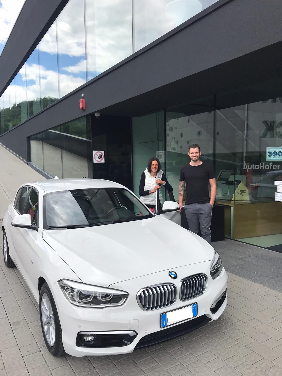 Carmen al ritiro della sua BMW Serie 1, 118D. Ti auguriamo tanti chilometri felici e ovviamente un buon viaggio!