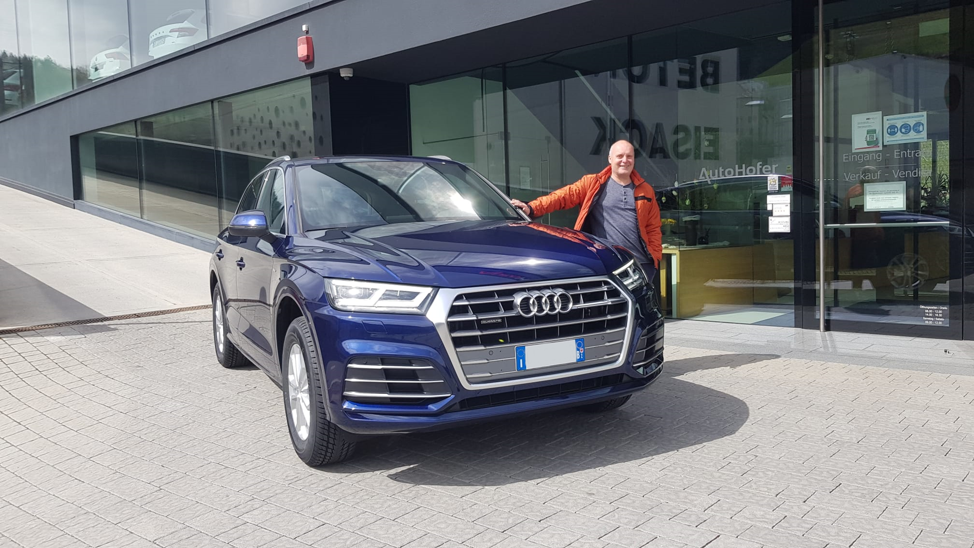Sportività combinata con un'alta usabilità quotidiana. Da oggi in poi, il nostro cliente Egon è in giro con il suo nuovo compagno su quattro ruote. L'Audi Q5 Quattro S-Line colpisce per le sue caratteristiche tecniche e convince per i suoi dettagli moderni. Pratico ed elegante, il SUV sportivo d'ora in poi ti accompagnerà in tutti i tuoi viaggi. Tutto il team di Auto Hofer ti augura tanto divertimento e, soprattutto, un viaggio sicuro!