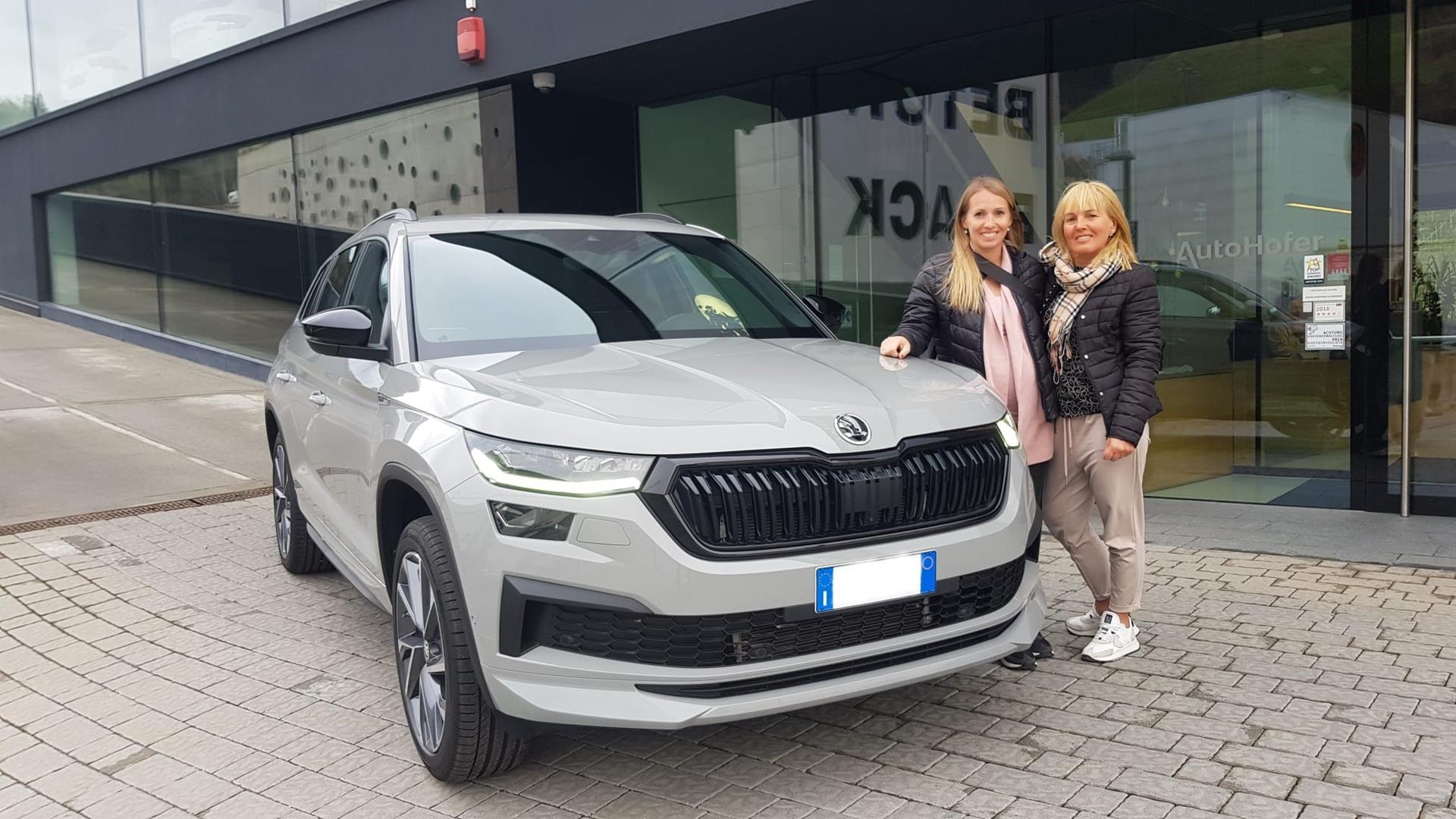 Distintivo, sportivo, elegante. Da oggi in poi, la Skoda Kodiaq Sportline è la nuova compagna di Jasmin & Annelies. Sistemi di assistenza avanzati come il rilevamento della sonnolenza, l'aiuto al parcheggio e il Travel Assist sono solo una frazione di ciò che il moderno SUV ha da offrire. Inoltre, la Skoda Kodiaq delizia con numerosi dettagli intelligenti all'interno. Care Jasmin e Annelies, vi auguriamo un piacere di guida infinito e un viaggio sicuro con il vostro nuovo compagno di viaggio!