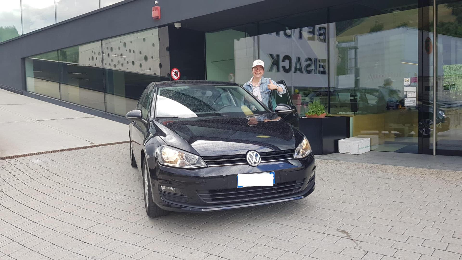 Anna e la sua Golf 7 automatica, l'usato perfetto per i viaggi più lunghi. Numerosi sistemi di assistenza, un design moderno e sportivo e un elevato livello di comfort, affinché il piacere di guida continui anche nei viaggi più lunghi. Cara Anna, ti auguriamo di vivere tante avventure divertenti e indimenticabili con il tuo nuovo compagno!