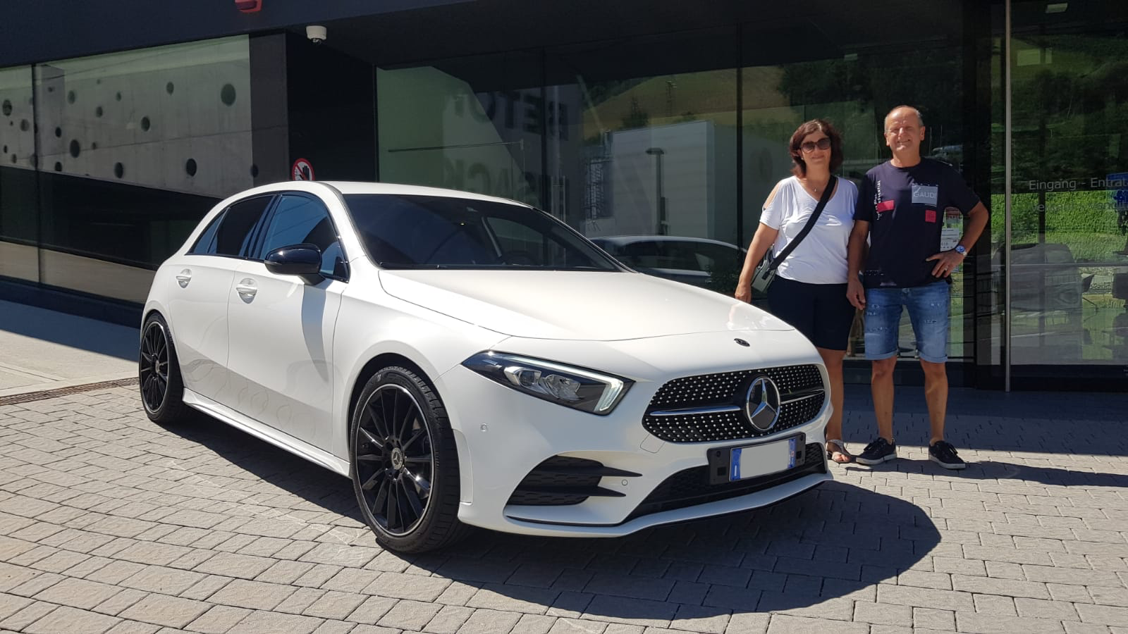 Un design elegante e sistemi di sicurezza per portarvi da A a B in tutta sicurezza. Inoltre, l'inconfondibile comfort della Limousine consente di godersi appieno ogni viaggio. Perfetto per affrontare le sfide della vita quotidiana non solo con stile, ma anche in modo dinamico e confortevole. La sportiva Mercedes A200 AMG non lascia nulla a desiderare. Cara Karin e caro Othmar, vi ringraziamo per la vostra fiducia e vi auguriamo tante avventure indimenticabili.