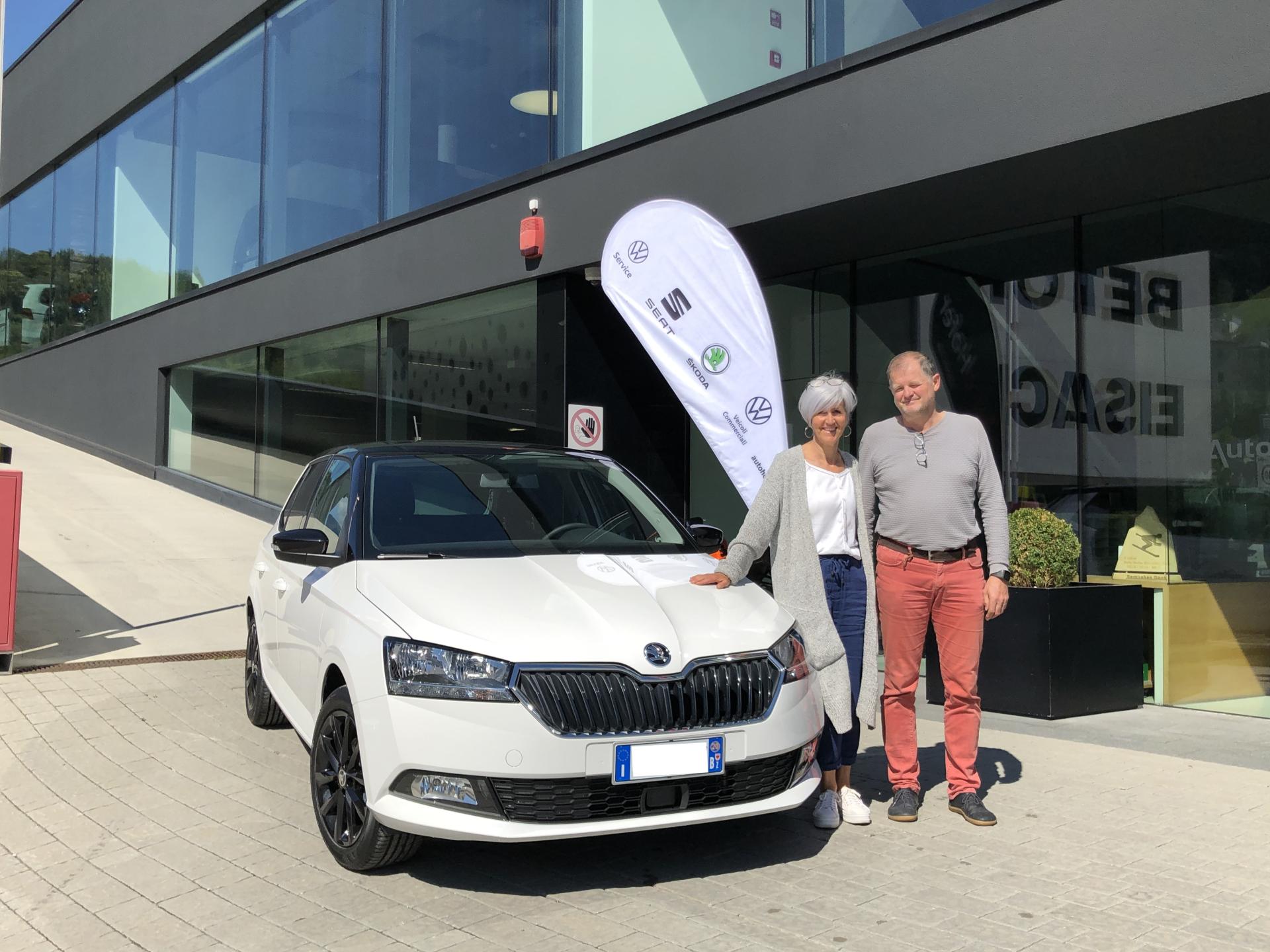 Marlene, Arnold e la loro nuova Škoda Fabia 1.0 TSI TwinColor! Noi, lo staff di Auto Hofer, vi auguriamo tanti chilometri felici con l'auto compatta di Škoda e i suoi sistemi di infotainment e sicurezza avanzati.
