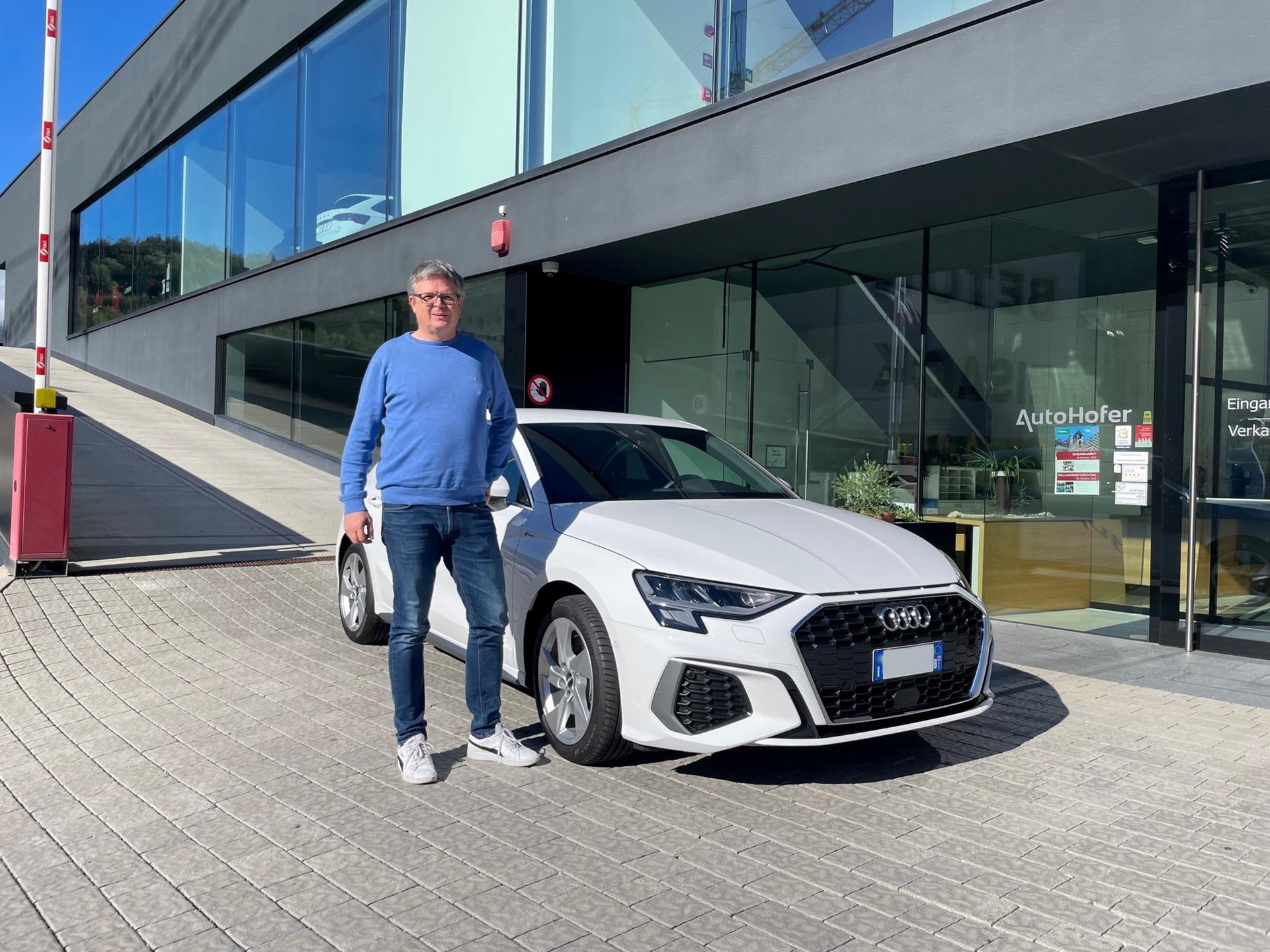 Moderno, sportivo, elegante. L'Audi A3 convince Werner fin dal primo momento. Con il suo carattere unico e le sue caratteristiche tecniche, questo modello tuttofare attira l'attenzione ogni secondo. Perché che sia per la città, la montagna oppure il mare, d'ora in poi nessuna strada è troppo lontana per Werner! L'intero team di Auto Hofer desidera ringraziarti per la tua fiducia e ti augura tanto divertimento e, soprattutto, tanto piacere di guida!