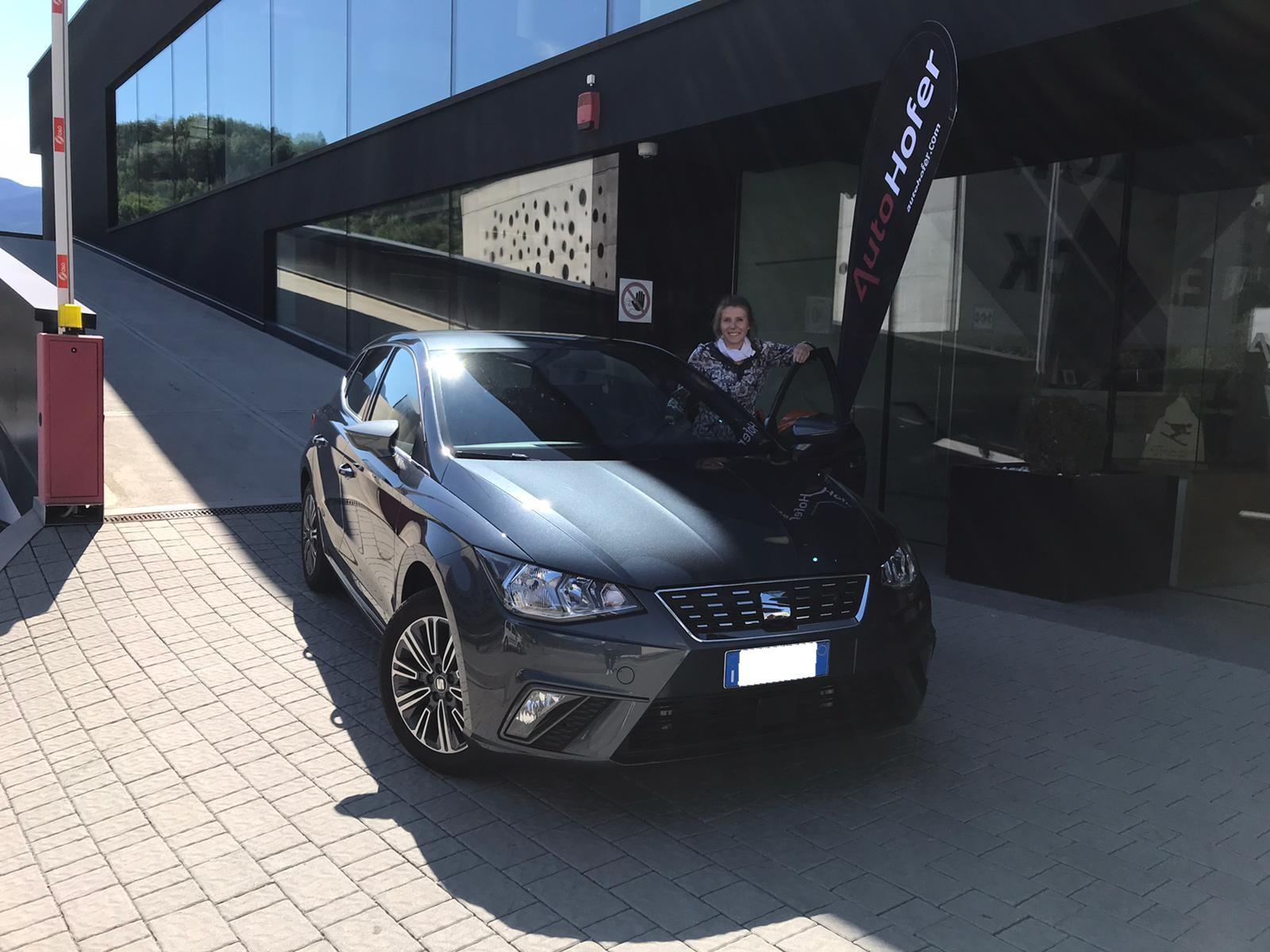 Alexandra e il suo nuovo compagno su quattro ruote: una Seat Ibiza 1.6 TDI Xcellence! Tutto lo staff di Auto Hofer ti augura tanta gioia, tanti chilometri felici e grande avventure con l'auto compatta di SEAT.
