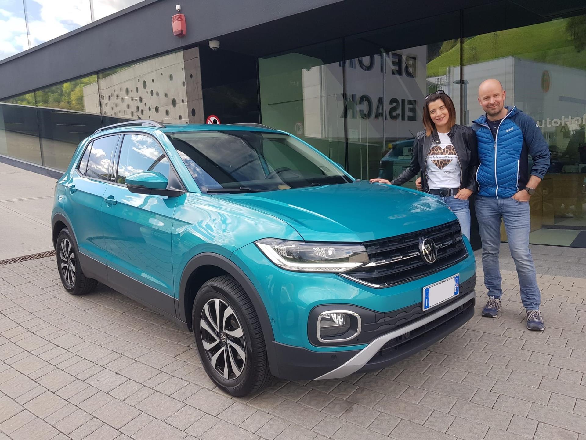 Esterni affilati, interni moderni. Manuela e Jürgen quando ritirano la loro VW T-Cross non vedono l'ora di vivere le numerose avventure che la compatta di Volkswagen ha da offrire. L'auto compatta non è solo un maestro per il tragitto quotidiano verso il lavoro. Che si tratti di una gita con la famiglia e gli amici oppure di un viaggio un po' più lungo verso il centro commerciale: Con la VW T-Cross, ogni giorno si conclude con un'avventura indimenticabile. Cara Manuela, caro Jürgen, l'intero team di Auto Hofer vi ringrazia per la vostra fiducia e vi augura il meglio e una guida sicura!