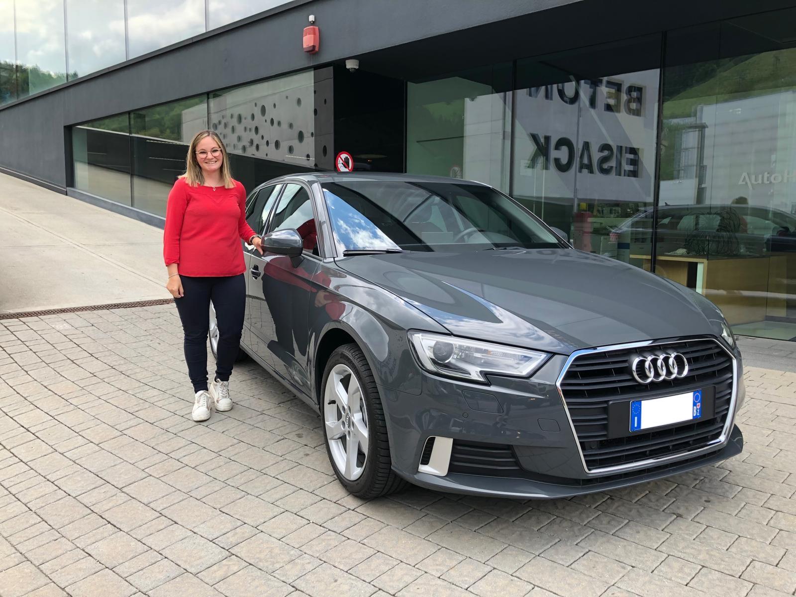 La nostra cliente Sandra alla consegna della sua Audi A3 Sportback con fari bi-xeno, sedili riscaldabili e climatizzatore automatico comfort!