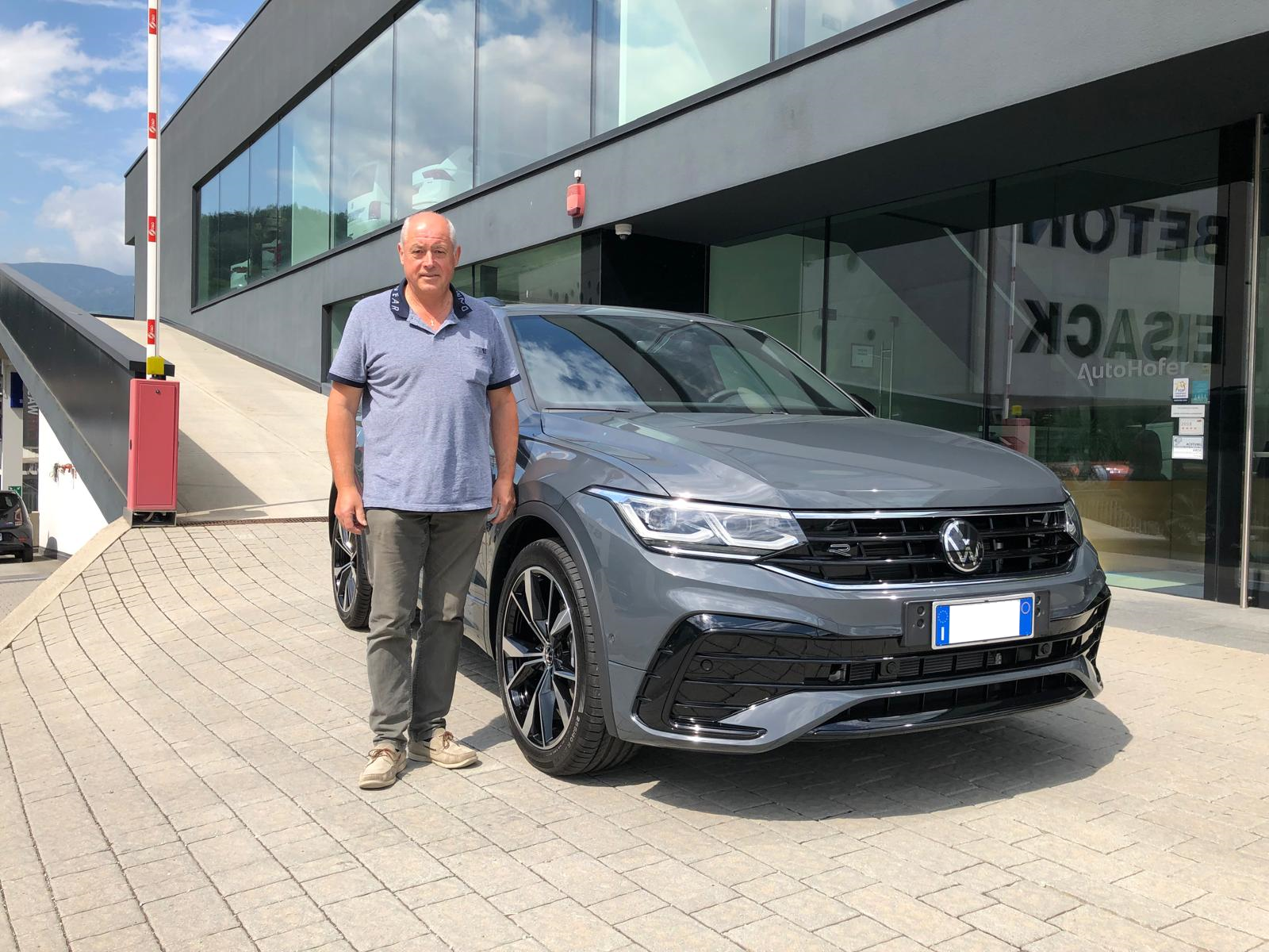 Il nostro cliente Oskar alla consegna della sua Volkswagen Tiguan 2.0 TDI DSG R-Line con trazione integrale! Il SUV di Volkswagen combina prestazioni, comfort e design elegante.