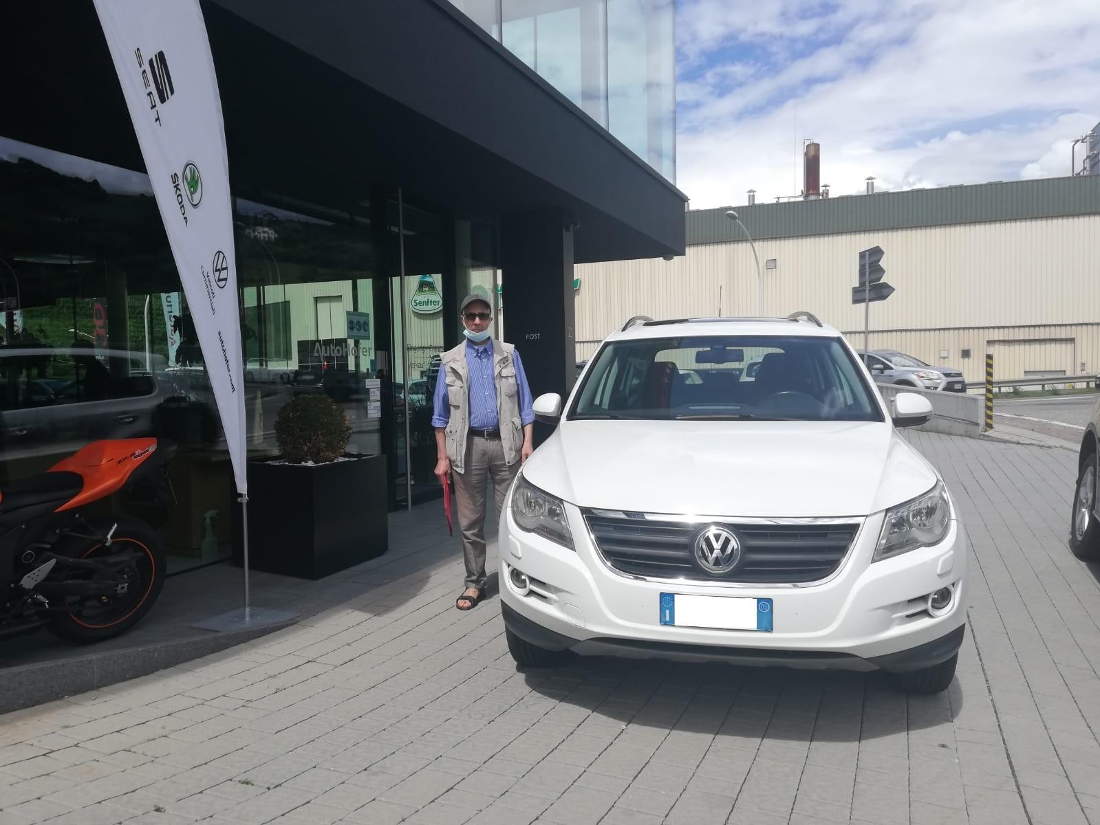 Abdellah e la sua Volkswagen Tiguan 2.0 TDI Sport & Style 4Motion usata. Tutto lo staff di Auto Hofer spera che tu avessi trovato un compagno affidabile in questa VW Tiguan e che ti porti sempre in sicurezza alla tua prossima destinazione! Ti auguriamo un buon viaggio con il SUV di Volkswagen.